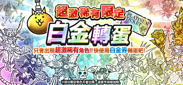 只會出現超激稀有角色!! 快使用白金券轉蛋吧!