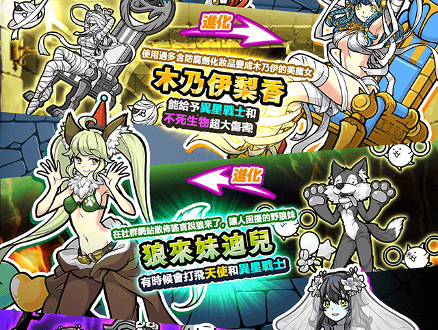 ※「超激稀有角色1隻確定活動」舉辦時,需要使用「連續轉蛋11次」的選項才會確定獲得1隻或以上的超激稀有角色。